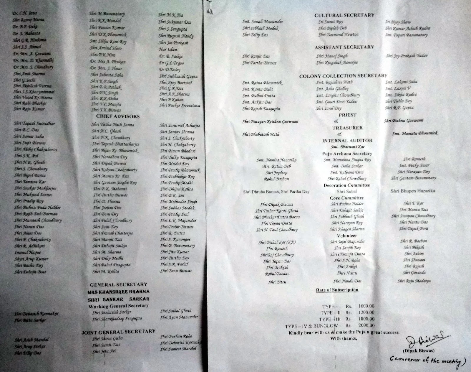 Nambari Sarbajanin Durga Puja & Kali Puja Committee - Prayer for Subcription/Donation